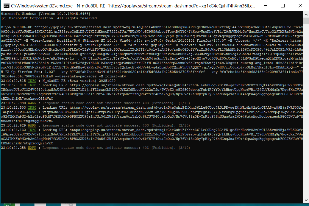 Would be great to help, thanks!Code:N_m3u8DL-RE "https://fflive-parrot-chch.b-cdn.net/manifest.mpd" -H "User-Agent: Mozilla/5.0 (Windows NT 10.0; Win64; x64; rv:146.0) Gecko/20100101 Firefox/146.0" -H "Accept: */*" -H "Referer: https://www.parrot.tv/" -H "Origin: https://www.parrot.tv" --key df45afa2b59811e88c759c0e65bb016a:d83ca45ce7965fde7b5309292213fddf --use-shaka-packager -M format=mkv