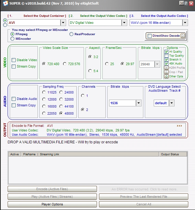 I can not insert a jpg here of that. Darn. I will ask a short version on the thread. Also I'm seeing this message often when using file during and around operations concerning the DSG. Asking whether and when to use ffdshow. I was wondering what would be the best answer for this pop-up.