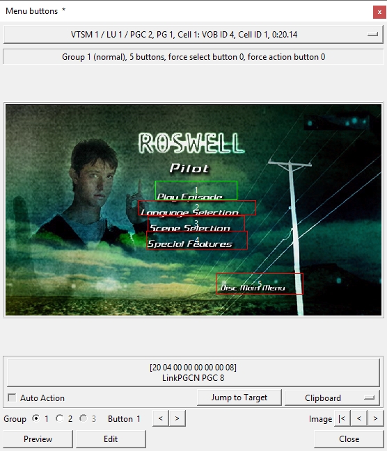 Also, if you look in the PGC Editor of any of these menus, in the cells list frame, you will certainly see a Cell Still Time of 255. This is a special value meaning that the last frame of the video (or, in this case, the only frame of the still picture) must be displayed forever. This is necessary for a still menu, to wait for the user to activate a button. For an animated menu, usually the Cell Still Time is 0, and the video with the buttons is played again and again in a loop until the user activates a button.