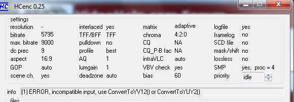 hi , i'm having a slight problem i converted a few things with this but just try'd to convert the next three things which are the same as three other things i converted and i never got this msg with first three things, but i keep getting this msg , on the last conversion i did select the option to always use ffdshow on conversions , so not sure if thats what is causing the problem , but i really need to know whats causing this , help greatly appreciated