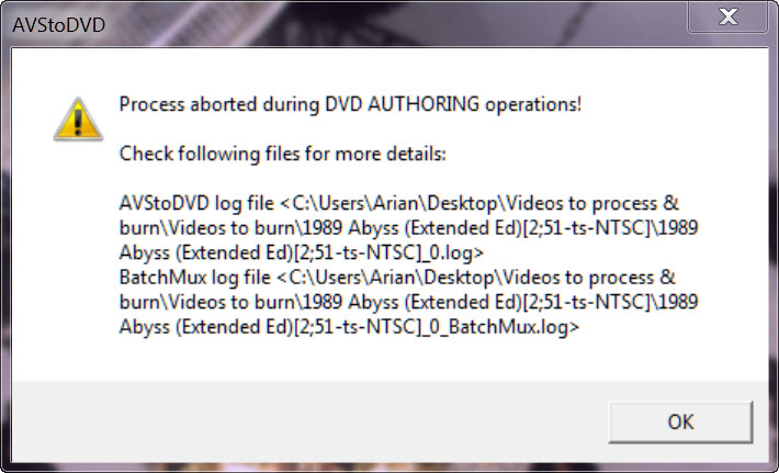 AVStoDVD log file <C:\Users\Arian\Desktop\Videos to process & burn\Videos to burn\1989 Abyss (Extended Ed)[2;51-ts-PAL]\1989 Abyss (Extended Ed)[2;51-ts-PAL]_0.log>