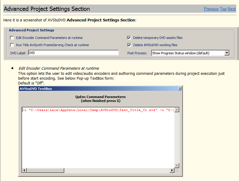 And I have already given you the answer: toggle off 'Edit Encoder Command Parameters at runtime' from Advanced Project Settings of main AVStoDVD window.