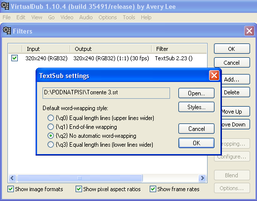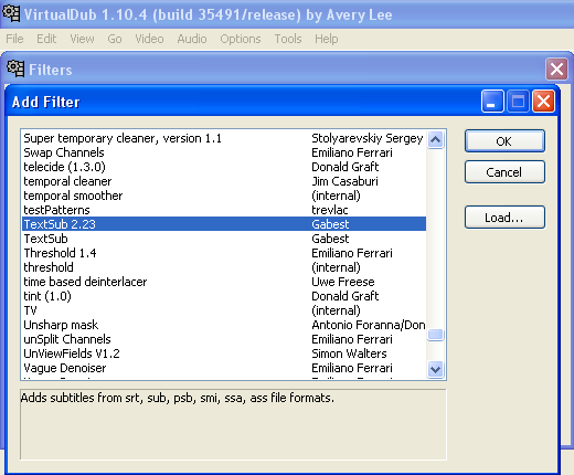 1. After installing VobSub 2.23 there is a textsub.vdf plugin in the VobSub directory, which you can copy into the VDub plugin directory and there it looks something like this: