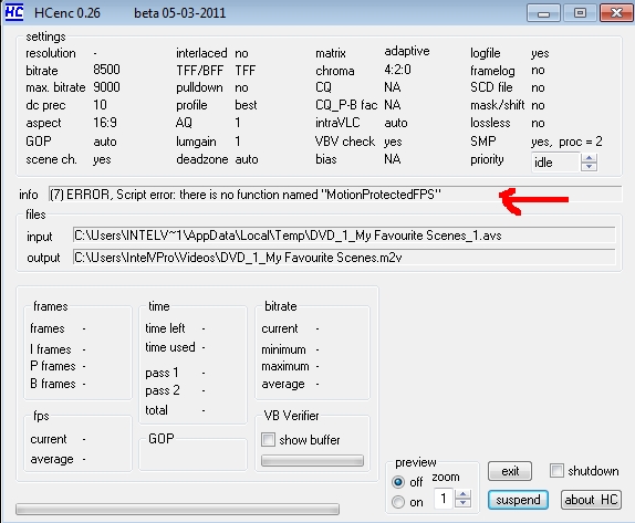 Which error message exactly?Code:The first step wont work as i get an error something regarding the MotionProtectedFPS(25)?