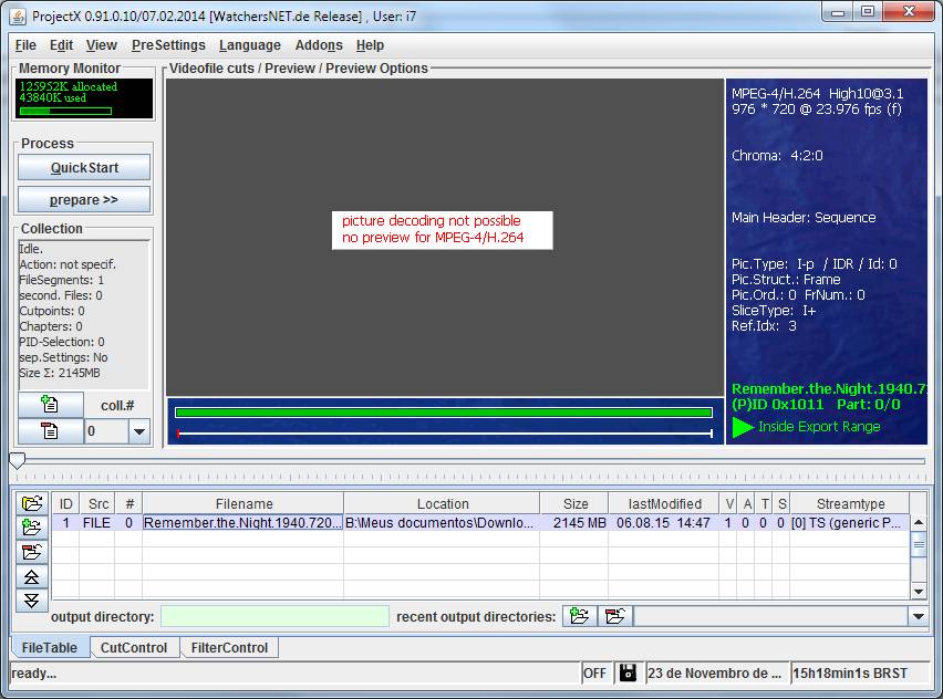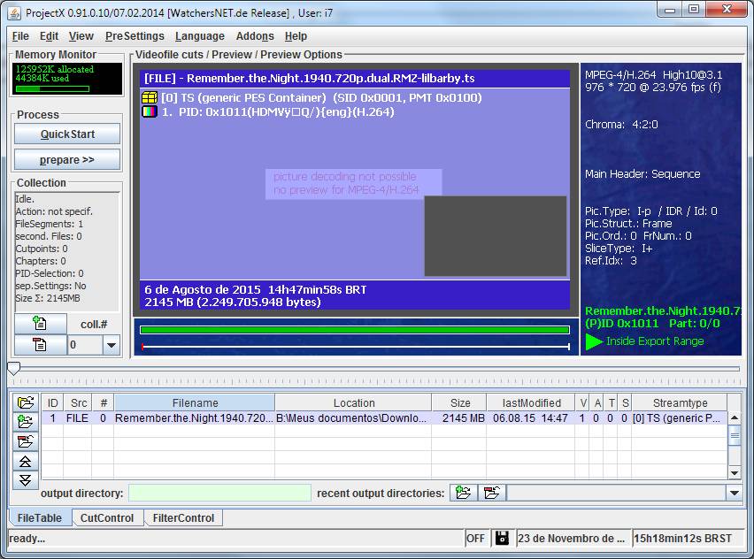 Code:TS, 1 video track, 2 audio tracks, 1 subtitle track, 1:33:42, 24p /1.001 1: h264/AVC, 972x720 24p /1.001, 10 bits 2: AAC, English, 2.0 channels, 24kHz 3: AAC, Portuguese, 2.0 channels, 24kHz 4: Subtitle (PGS), Portuguese The source file doesn't contain any subtitle tracks in this format. <ERROR>