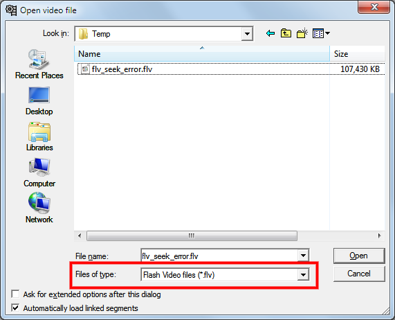 If that still doesn't work, use MediaInfo to verify your files are really FLV files. If the is really FLV and you still get that error message there is just some incompatibility between the file and the plugin. Try using a different source plugin like ffmpeg or DirectShow. -
