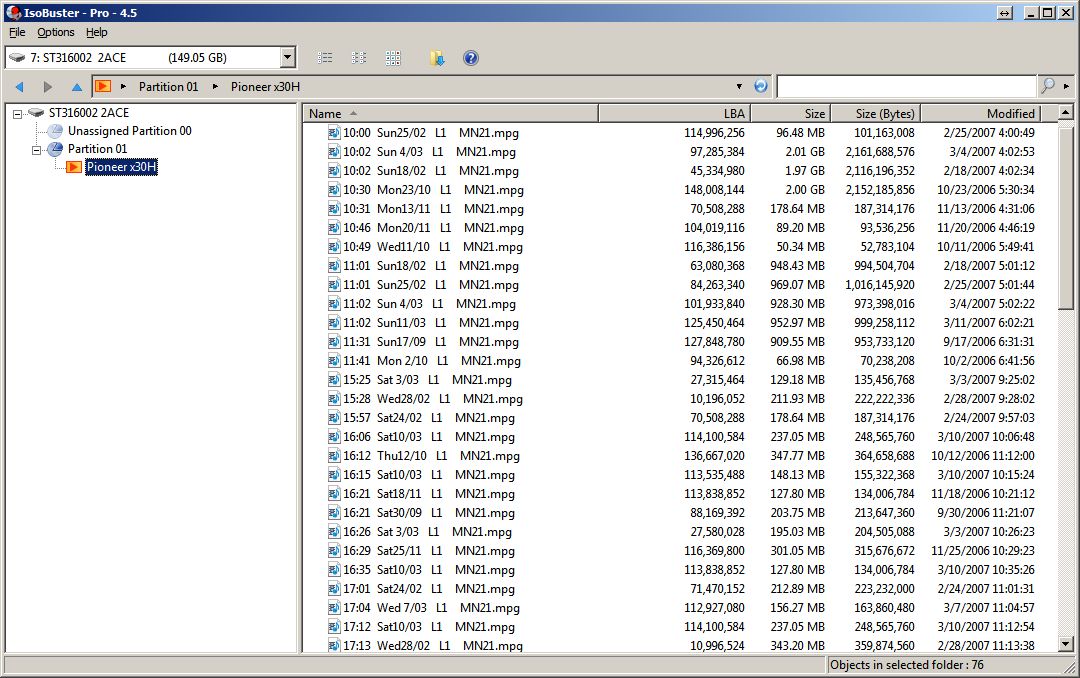 I connected it to my Windows 7 PC with an IDE to USB3.0 adapter and started up IsoBuster 4.5 Pro