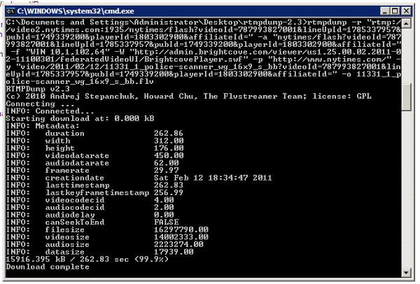 I've tried rtmpdump, but for some reason I'm not able to download the video. I only get a few errors so I guess I'm using the wrong url input all the time... Anyway, here's the location of the video: http://tinyurl.com/5rb5zvj
