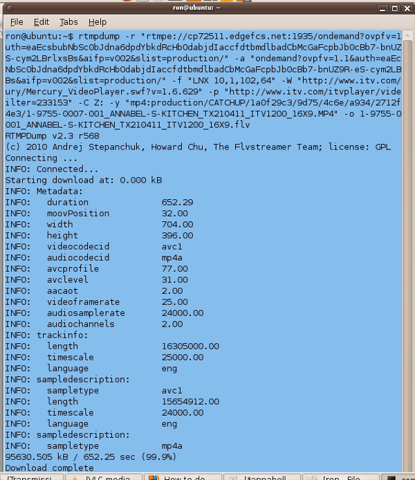 rtmpdump -r "rtmpe://cp72511.edgefcs.net:1935/ondemand?ovpfv=1.1&auth=eaEb.dXaqaWaockaRbNbEcIbybndLb2amdobgaxcYb1aXd3cOcrcLcCaYcUbJaNbidP-bnU1eI-eS-6Av1IAvjztwp&aifp=v002&slist=production/" -a "ondemand?ovpfv=1.1&auth=eaEb.dXaqaWaockaRbNbEcIbybndLb2amdobgaxcYb1aXd3cOcrcLcCaYcUbJaNbidP-bnU1eI-eS-6Av1IAvjztwp&aifp=v002&slist=production/" -f "LNX 10,1,102,64" -W "http://www.itv.com/mercury/Mercury_VideoPlayer.swf?v=1.6.629" -p "http://www.itv.com/itvplayer/video/?Filter=233153" -C Z: -y "mp4:production/CATCHUP/1a0f29c3/9d75/4c6e/a934/2712fe12d4e3/1-9755-0007-001_ANNABEL-S-KITCHEN_TX210411_ITV1200_16X9.MP4" -o 1-9755-0007-001_ANNABEL-S-KITCHEN_TX210411_ITV1200_16X9.flv