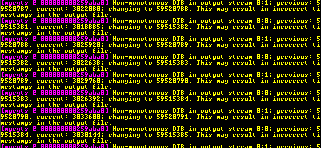 ffplay version N-52045-g694fa00 Copyright (c) 2003-2013 the FFmpeg developers built on Apr 12 2013 16:54:51 with gcc 4.8.0 (GCC) configuration: --enable-gpl --enable-version3 --disable-w32threads --enable-av isynth --enable-bzlib --enable-fontconfig --enable-frei0r --enable-gnutls --enab le-iconv --enable-libass --enable-libbluray --enable-libcaca --enable-libfreetyp e --enable-libgsm --enable-libilbc --enable-libmp3lame --enable-libopencore-amrn b --enable-libopencore-amrwb --enable-libopenjpeg --enable-libopus --enable-libr tmp --enable-libschroedinger --enable-libsoxr --enable-libspeex --enable-libtheo ra --enable-libtwolame --enable-libvo-aacenc --enable-libvo-amrwbenc --enable-li bvorbis --enable-libvpx --enable-libx264 --enable-libxavs --enable-libxvid --ena ble-zlib libavutil 52. 26.100 / 52. 26.100 libavcodec 55. 2.100 / 55. 2.100 libavformat 55. 2.100 / 55. 2.100 libavdevice 55. 0.100 / 55. 0.100 libavfilter 3. 53.101 / 3. 53.101 libswscale 2. 2.100 / 2. 2.100 libswresample 0. 17.102 / 0. 17.102 libpostproc 52. 3.100 / 52. 3.100 Input #0, hls,applehttp, from 'http://www.youtube.com/api/manifest/hls_playlist/ id/1a86fa62ffd24806/itag/96/source/youtube/ratebypass/yes/pfa/1/pbr/yes/hls_chun k_host/www.youtube.com/gir/yes/clen/3248226208/lmt/1347656498690111/maudio/1/cp/ U0hWSVVOVl9KU0NONl9NSFpHOkRsWC1tUVhkWXcx/playlist_type/DVR/pmbypass/yes/fexp/929 117,929121,929906,929907,929127,929129,929131,925720,925722,925718,925714,929917 ,929919,912521,931917,904830,919373,904122,919387,936303,900816,936301,912711,93 5000,921057,929309/sver/3/upn/bHu78Rj0yuE/cpn/jKEAeT1Ef4g4kNb-/ip/176.167.10.162 /ipbits/8/expire/1374538659/sparams/ip,ipbits,expire,id,itag,source,ratebypass,p fa,pbr,hls_chunk_host,gir,clen,lmt,maudio,cp,playlist_type,pmbypass/signature/57 2036F9CB73E2CCC31EF80C024B33FA4B1BE0E6.42CC45184775D0C5076A08276160F314126066A3/ key/dg_yt0/file/index.m3u8': Duration: 01:07:08.00, start: 95040.586022, bitrate: 1 kb/s Program 0 Metadata: variant_bitrate : 0 Stream #0:0: Video: h264 (High) ([27][0][0][0] / 0x001B), yuv420p, 1920x1080 [SAR 1:1 DAR 16:9], 12.50 fps, 25 tbr, 90k tbn, 50 tbc Stream #0:1: Audio: aac ([15][0][0][0] / 0x000F), 48000 Hz, stereo, fltp, 16 6 kb/s 95056.64 A-V: 0.118 fd= 140 aq= 0KB vq= 0KB sq= 0B f=0/0Last edited by chapun67; 22nd Jul 2013 at 15:26.
