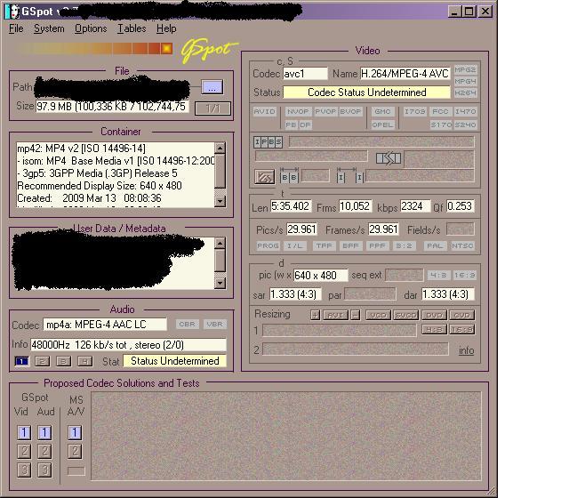I am including two screenshots from G-Spot. The first one is a file that will not load in Tsunami DVD Author. The second one is one of the files that loaded and converted just fine in Tsunami DVD Author.