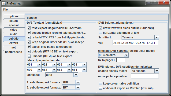 I set the page numbers to 690, 691, 692 and 693, but that's the only settings I touched but I didn't get any subtitles from the demuxing. Are there any checkboxes I need to check or something?
