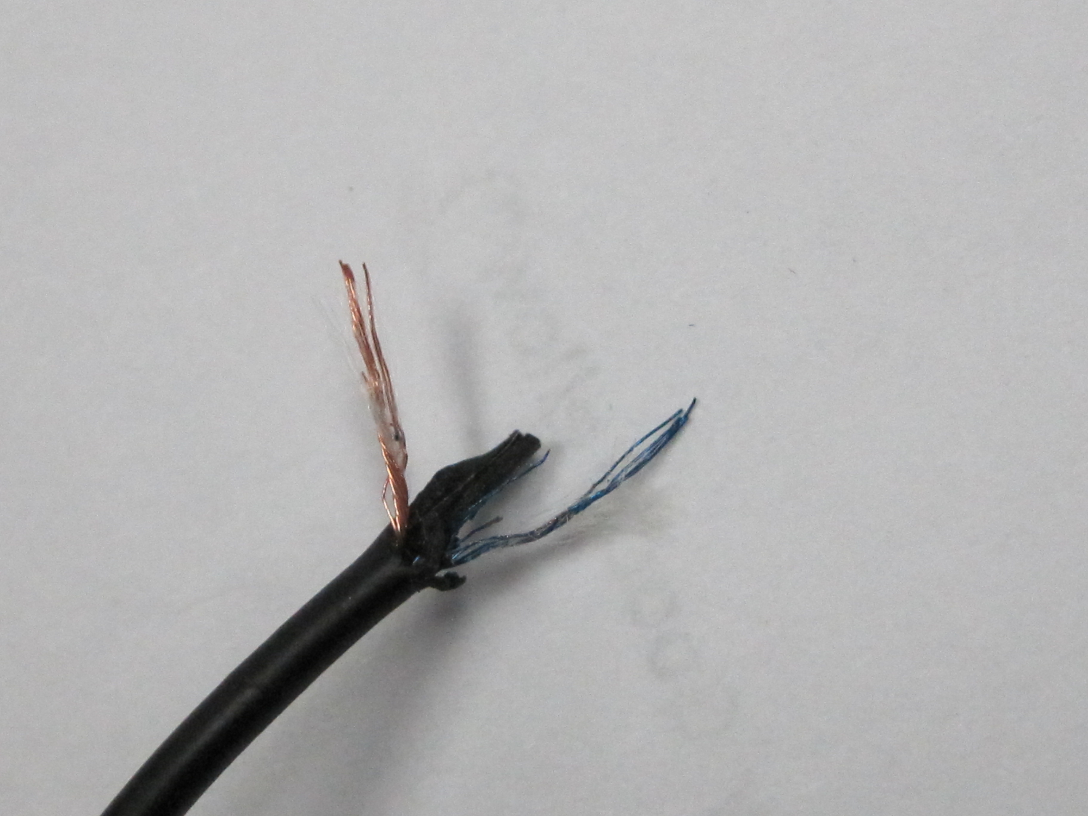2. The blue nylon string is there to help keep the wires from stretching and breaking in case the cord is pulled too hard. There should be two to four copper wires, each with their own