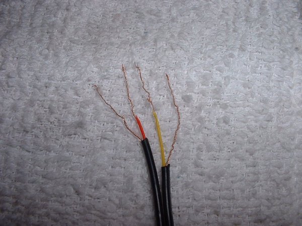 insulation (mono uses two wires, stereo can use four, or three if they use a common ground). Something like this (note this is four wires at one end of the cable):
