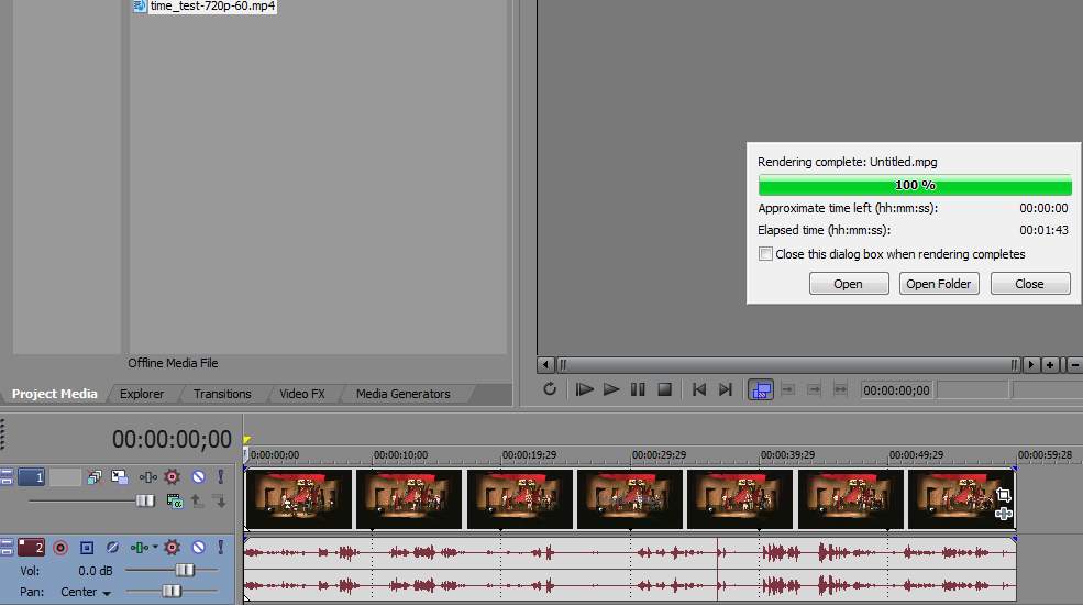 I realized as well that we should be able to do the physical burning of the DVD concurrently with the next edit. This means that we have about 8 minutes to encode ~5.5 minutes of video, so 1.3x should just be able to squeeze by under the wire.