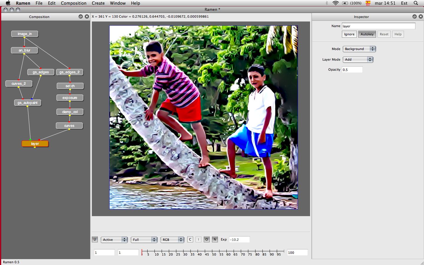 Some of you possibly remember the old Ramen compositor. It was an open source project which unfortunately wasn't very successful. The project was closed some months ago, but development went on and the compositor was rewritten. Important new features have been added and many errors have been fixed.