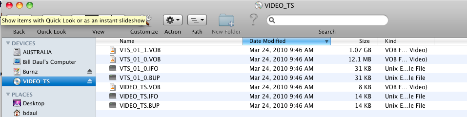The disc needs to be UDF. Your screenshot shows a DISC named VIDEO_TS. Actually there needs to be a folder NAMED VIDEO_TS inside the disc. The disc may be almost any name ("MYDISC" is fine). But the format of the disc MUST be UDF. Apple's Disc Utility does not burn UDF. Try an app named "Burn". You may find it here: