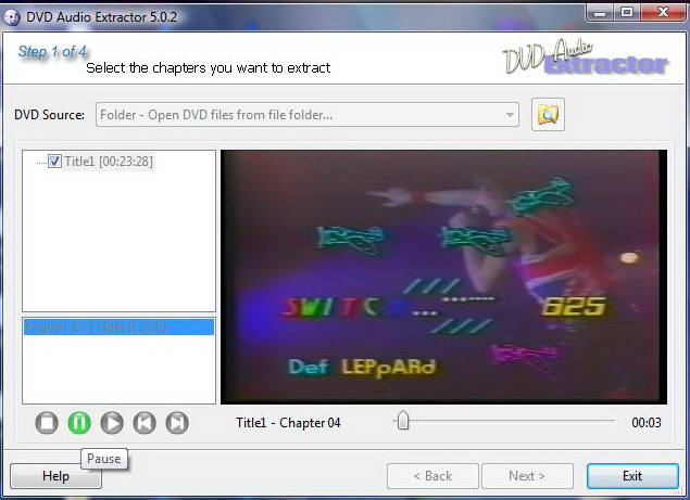The OP must be doing something wrong, should have no problem previewing the chapters, Noahtuck explained it nicely for him. DVD Audio Extractor is an EXCELLENT program, been using it for years as well, extracts audio from DVD's many different ways and does it as good or better than anything out there. I only wish they would make "Blu-ray Audio Extractor", I'd buy the program all over again for that.