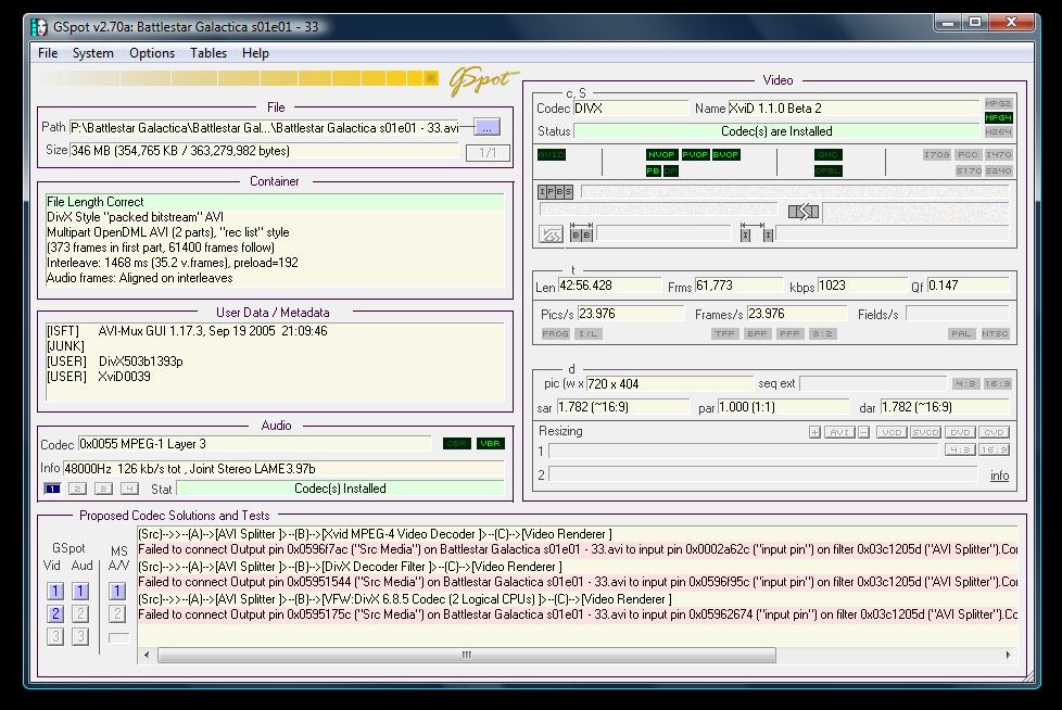 I used GSpot v2.70a to see if I couldn't figure out what was wrong with the files because that normally helps, but the error I got just left me hanging and now I am at a loss at what to do.