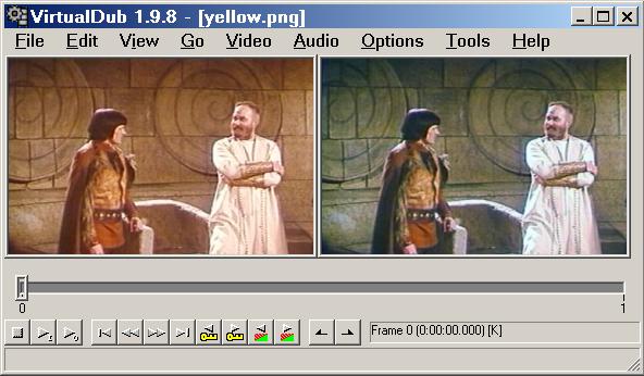 Second, the transfer of the movie to digital format once again is out of my reach, I try to correct what's already on a commercial DVD(the last yellowish picture is what the original looks like)...