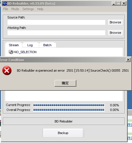 Why Blu-ray catalog with BD_Rebuilder open when an error dialog box will appear in the (Error Condition: BD Rebuilder experienced an error 2501 <10:38:14> SourceCheck () 00006 2501)