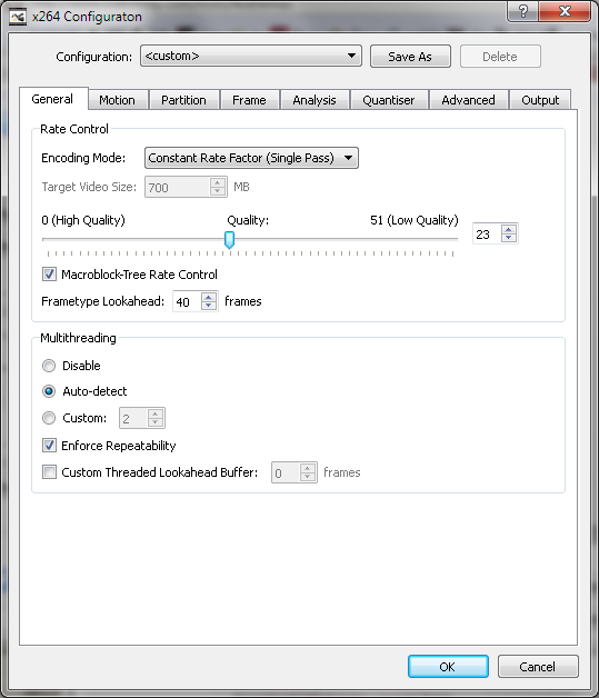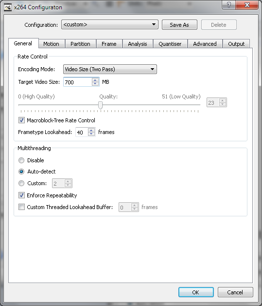 Could you give me your suggested settings in AviDemux in order to resample them without losing quality? (frames per sec., bitrate, audio format, video format, container, etc.)Code:General Complete name : /home/charles/Desktop/video.mpg Format : MPEG-PS File size : 9.21 MiB Duration : 10s 278ms Overall bit rate : 7 517 Kbps Video ID : 224 (0xE0) Format : AVC Format/Info : Advanced Video Codec Format profile : Main@L4.0 Format settings, CABAC : Yes Format settings, ReFrames : 4 frames Duration : 10s 278ms Bit rate : 7 368 Kbps Width : 1 440 pixels Height : 1 080 pixels Display aspect ratio : 16:9 Frame rate : 25.000 fps Color space : YUV Chroma subsampling : 4:2:0 Bit depth : 8 bits Scan type : Interlaced Scan order : Top Field First Bits/(Pixel*Frame) : 0.189 Stream size : 9.03 MiB (98%) Color primaries : BT.709-5, BT.1361, IEC 61966-2-4, SMPTE RP177 Transfer characteristics : BT.709-5, BT.1361 Matrix coefficients : BT.709-5, BT.1361, IEC 61966-2-4 709, SMPTE RP177