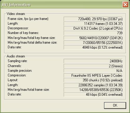 Audio > MPEG Layer 3 48 kBit/s 24,000 6KB/s