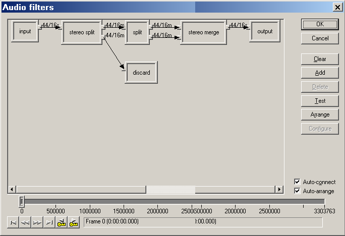Thank you so much Jagabo! I did it with split where your discard was and discard where split was and it worked perfectly! I now have sound in both channels! Again, Thank you so much!!!Last edited by Sifu73; 8th Jul 2010 at 19:34.