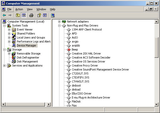 - Expand Non-Plug and Play Drivers by clicking the plus and double-click Beep.