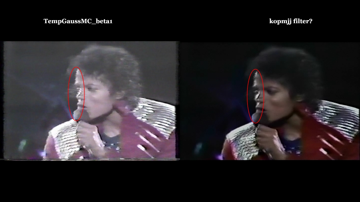 On the other hand, there are still these bad line on MJ's nose which are not there if I use a blend deinterlace filter.. And I still wonder if I can get rid of this without the double exposures effect of the blended mode.
