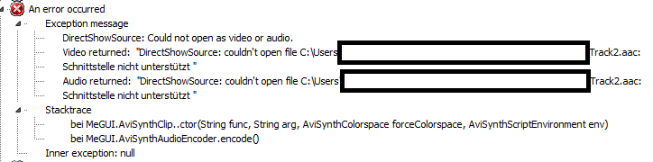After that I make everything correct in Megui and go to the queue and press start and then it gives me an error on the audio file.