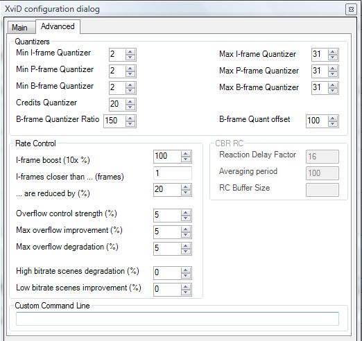 Yes, many of those settings are similar. I do mostly 1-pass constant quant encodes these days because I usually don't care what the final size is. For 2-pass encodes, yes, I severely restrict the I and P-Frame settings, usually to 2-6, but sometimes to 2-4. I don't think mine has a min/max B-Frame setting.However, you had better know what you're doing if you restrict them that much because you're liable sometimes to get oversized encodes because XviD won't have the ability to use higher quants to keep the size down. Not with this current project, though.