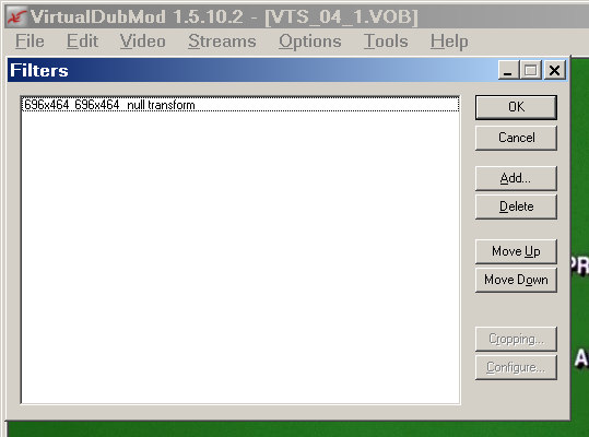 Right, i get that. But i don't see where i can in VirtualDubMod read the resolution of the crop/while cropping, or of the output file, or set the resolution.