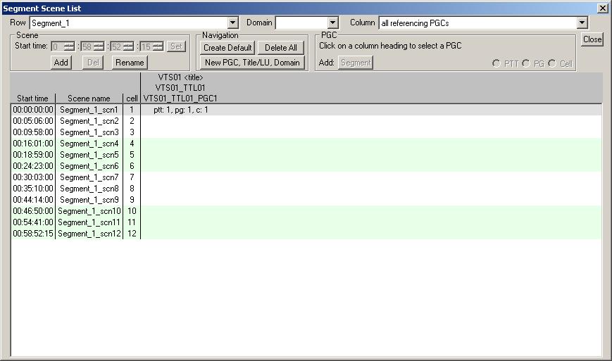 The lone entry in that final column of the Segement Scene List