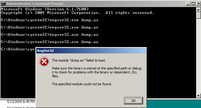 I also tried placing the files in the system32 and syswow64 folders and trying from the command prompt. -