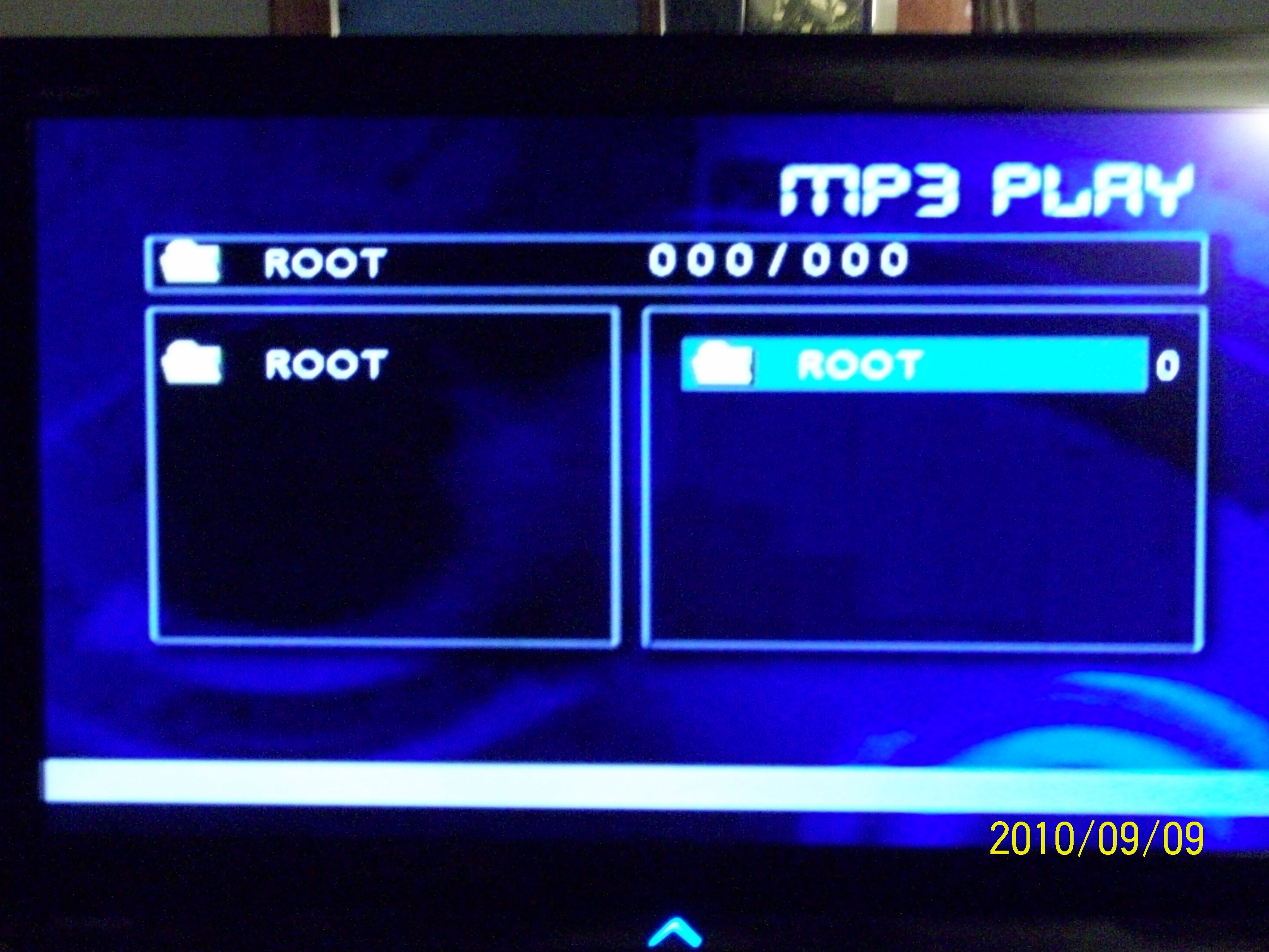 The MP3 PLAY heading on that screen would suggest to me you've burnt the disk in DATA mode rather than VIDEO mode, and the player is looking for data files (MP3, JPG, etc) to open. When you put that disk in a PC what shows when you open the disk in Windows Explorer? You should only see a VIDEO_TS folder and maybe a second (optional) AUDIO_TS folder too. If you see a list of file names you've done it wrong
