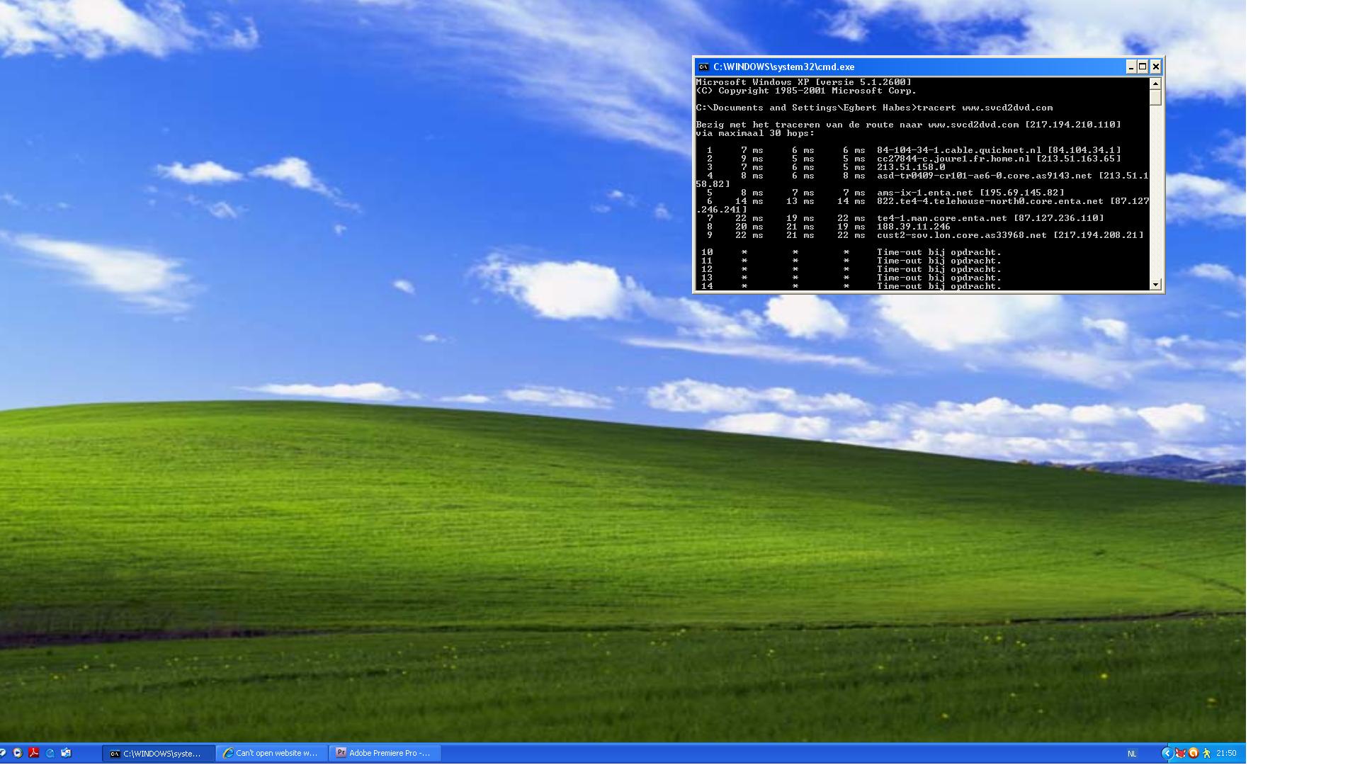 Code:tracert www.svcd2dvd.com Tracing route to www.svcd2dvd.com [217.194.210.110] over a maximum of 30 hops: 1 28 ms <1 ms <1 ms home [192.168.100.1] 2 * * * Request timed out. 3 22 ms 21 ms 21 ms 10.1.3.234 4 * * * Request timed out. 5 * * * Request timed out. 6 31 ms 26 ms 27 ms linx-2.hostinguk.net [195.66.227.23] 7 28 ms 27 ms 28 ms cust2-sov.lon.core.as33968.net [217.194.208.21] 8 36 ms 36 ms 36 ms ftp14.hostinguk.net [217.194.210.110] Trace complete.