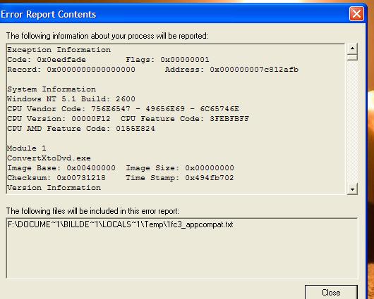 (convertxtodvd transcoder) 0xc00d0bc5 transcoding error; convert transcoder not responding; convert x as encountered a problem and has had to close .when i try to open it i get the error.thanks any info on this . xbill![]()