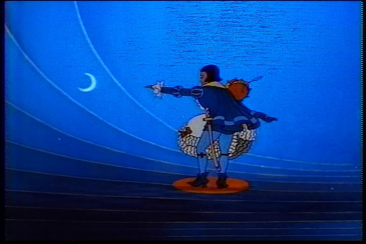 It occurs mainly in the large blue area above their heads, and only in this scene. The rest of the video is clean. Here's an xvid-compressed sample.