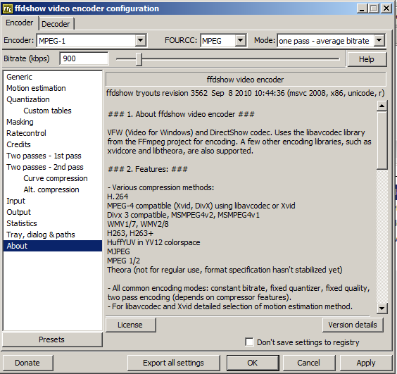 the mpeg-1 codec is listed in ffdshow if you want to try that. you might have to enable it in the configuration/codecs tab, and also the mpeg-1 in avi setting.