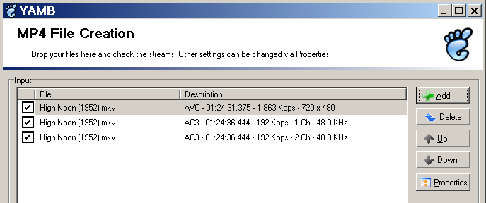 You can try using mkvextractgui , extract the raw streams, then import them into yamb