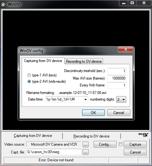 Date & Time Captured by DV out of Video Camera