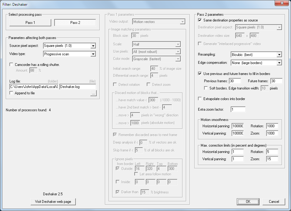 I checked the guide at http://www.guthspot.se/video/deshaker.htm