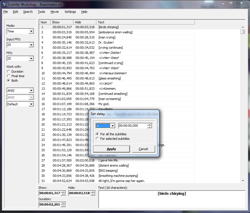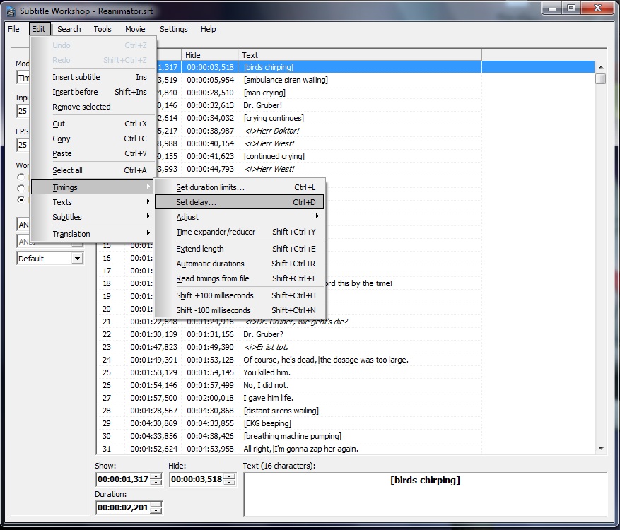 1. I have an video.avi file and subtitles.srt file, the subtitles seem to show 2 seconds late. Is there any quick way to edit them so it matches the video?
