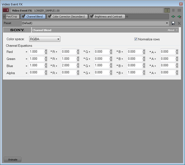 I'm trying to mute the blue channel, and mix a "new blue" from green and red.