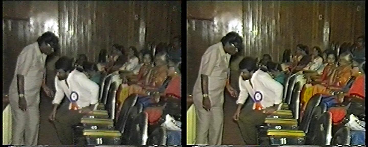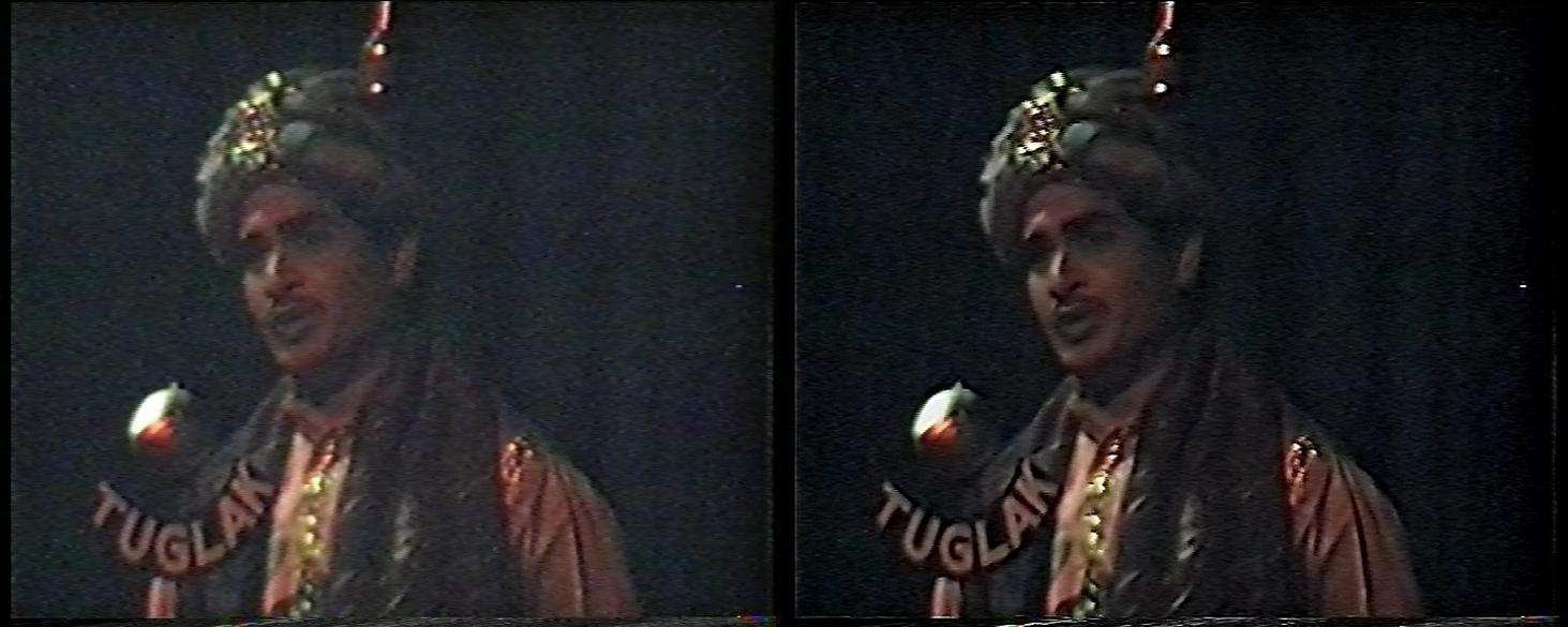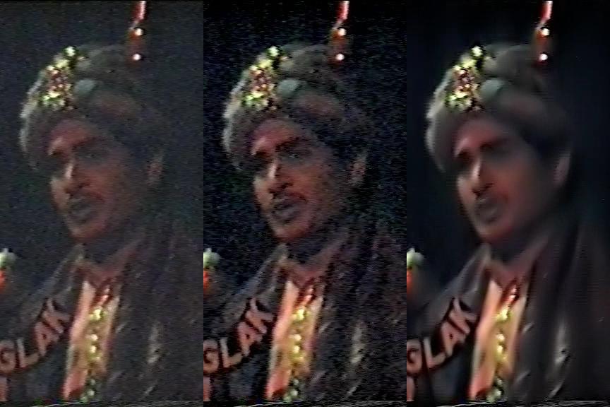 Basically, from restoration point of view, there are 4 parts to this video: One is the audience portion that is reasonably lit (Sample1-Uploaded). The other is moderately lit stage portion (Sample2 - Yet to be uploaded), 3rd is again a stage portion that is below average in terms of lighting (Sample3 - yet to be uploaded) and finally badly lit stage (Sample4 - Uploaded in this post). Yes, that's my uncle at a young age in Sample4.