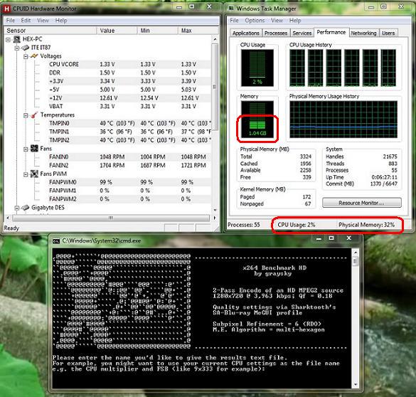 IDLE: CPU usage=2%, Memory=32%, RAM usage=1.04GB