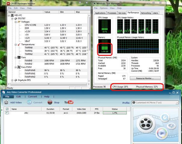 MPEG: CPU usage=18%, Memory=32%, RAM usage=1.06GB