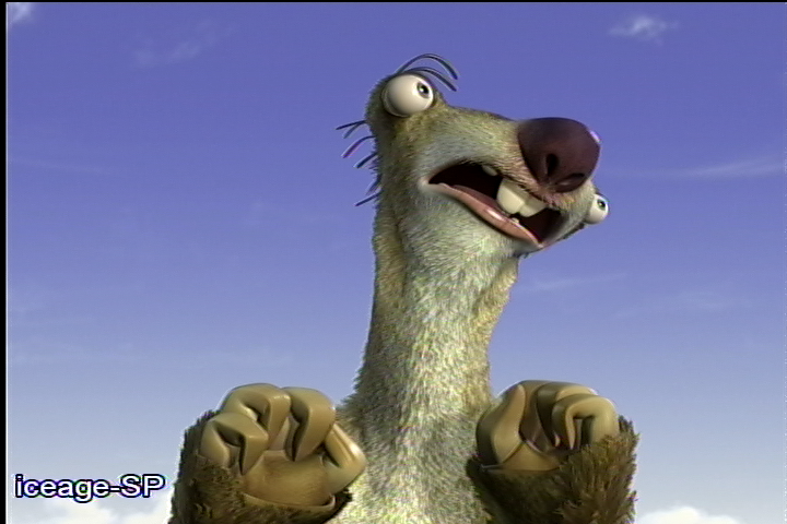 Played on a Philips DVP642, and I took two screenshots using my PS3 to see how much the player might affect the results. Except for the PS3, the cables used in each case were identical: a 5.5' composite cable that I believe came from a dollar store years ago and an S-Video cable that came as a pack-in with some equipment. I also compared this composite cable vs. a 3.5' entry-level "SV1" Monster cable but the differences were too negligible to bother posting any images. All were captured YUY2 using either Huffyuv or Huffyuv-MT in VirtualDub; the first two on Windows XP and the latter two on Windows 7 x64. For the 128 the driver used was dated 2001-09-26 and for the 9800 dated 2009-03-31. One thing I had forgotten until after I did the captures is that the 128 only seems to be able to do up to 704x480 properly. It's also a lot noisier than the others, though you can't see that in single screenshots. In all cases I used the default procamp settings and made no attempt to calibrate them for better accuracy.