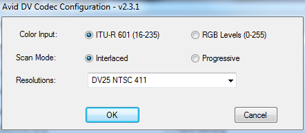 - compression: avid dv codec (color input: rgb levels 0-255; resolution: dv50 pal)
